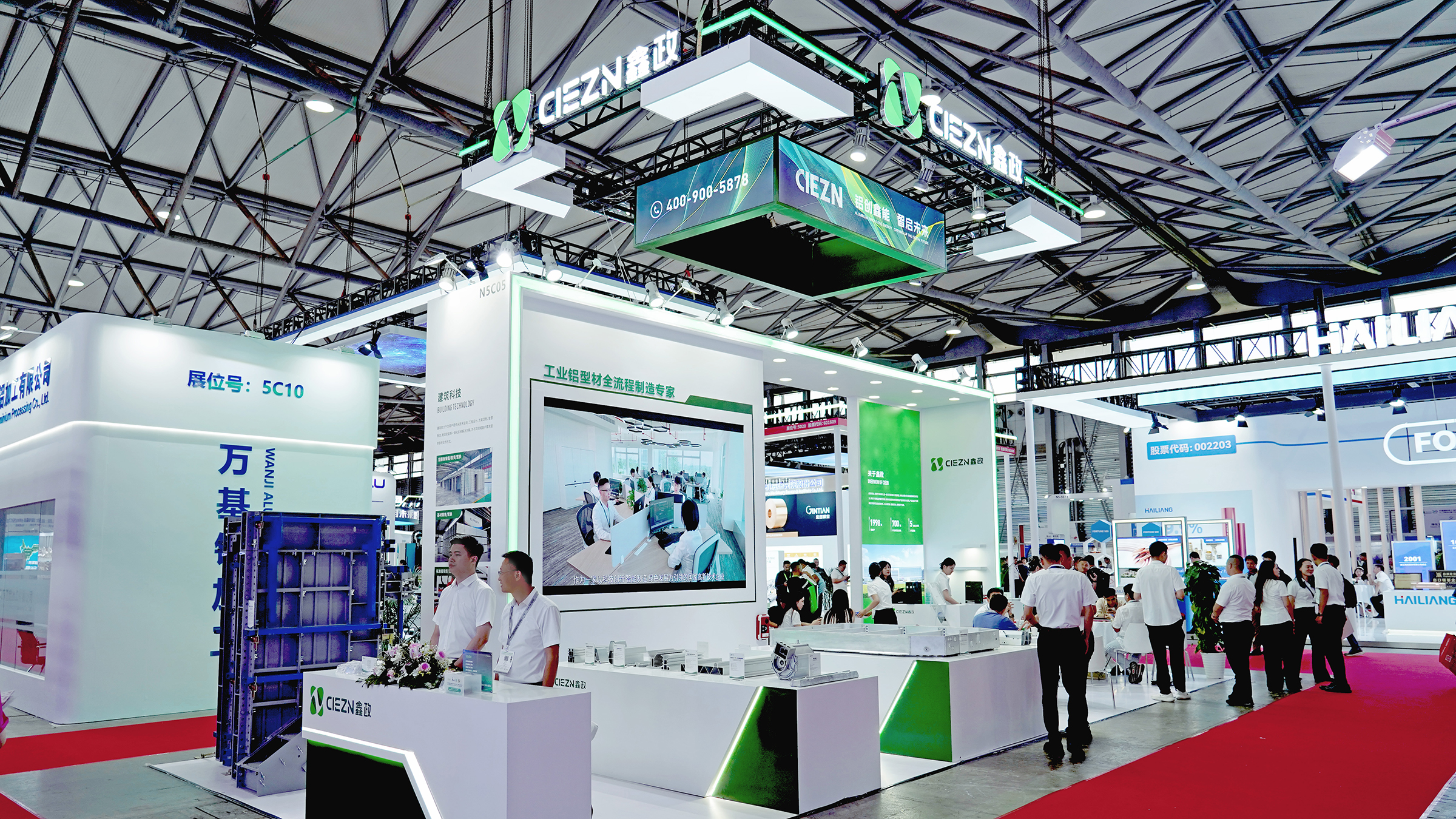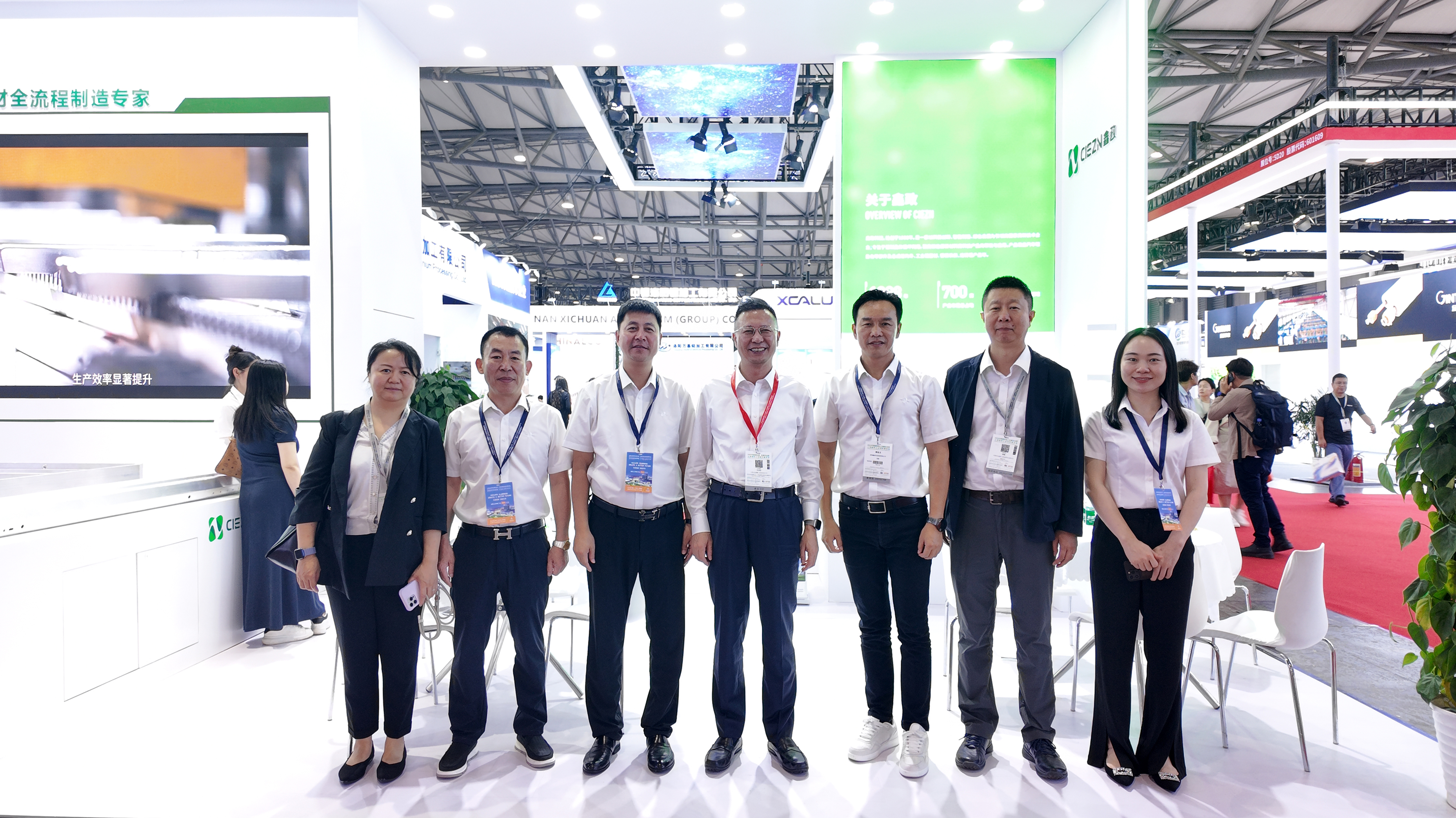 中國有色金屬工業協會副秘書長、再生金屬分會副會長兼秘書長王吉位,副秘書長李波,上海鋁業行業協會秘書長劉禮林蒞臨鑫政展位交流指導,對我司在綠色產業取得的技術創新與發展成果表示肯定。展臺核心區域持續吸引專業觀眾到訪問詢,新能源車用鋁型材、工業鋁型材、鋁模系統等創新產品引發關注。